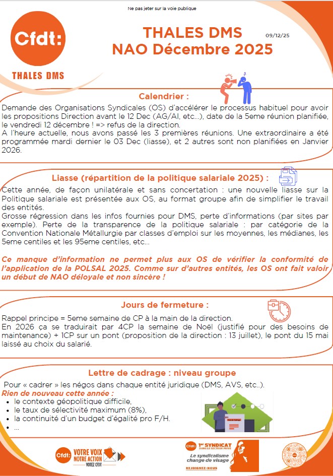 Thales DMS - NAO 2025 : Les revendications de la CFDT DMS