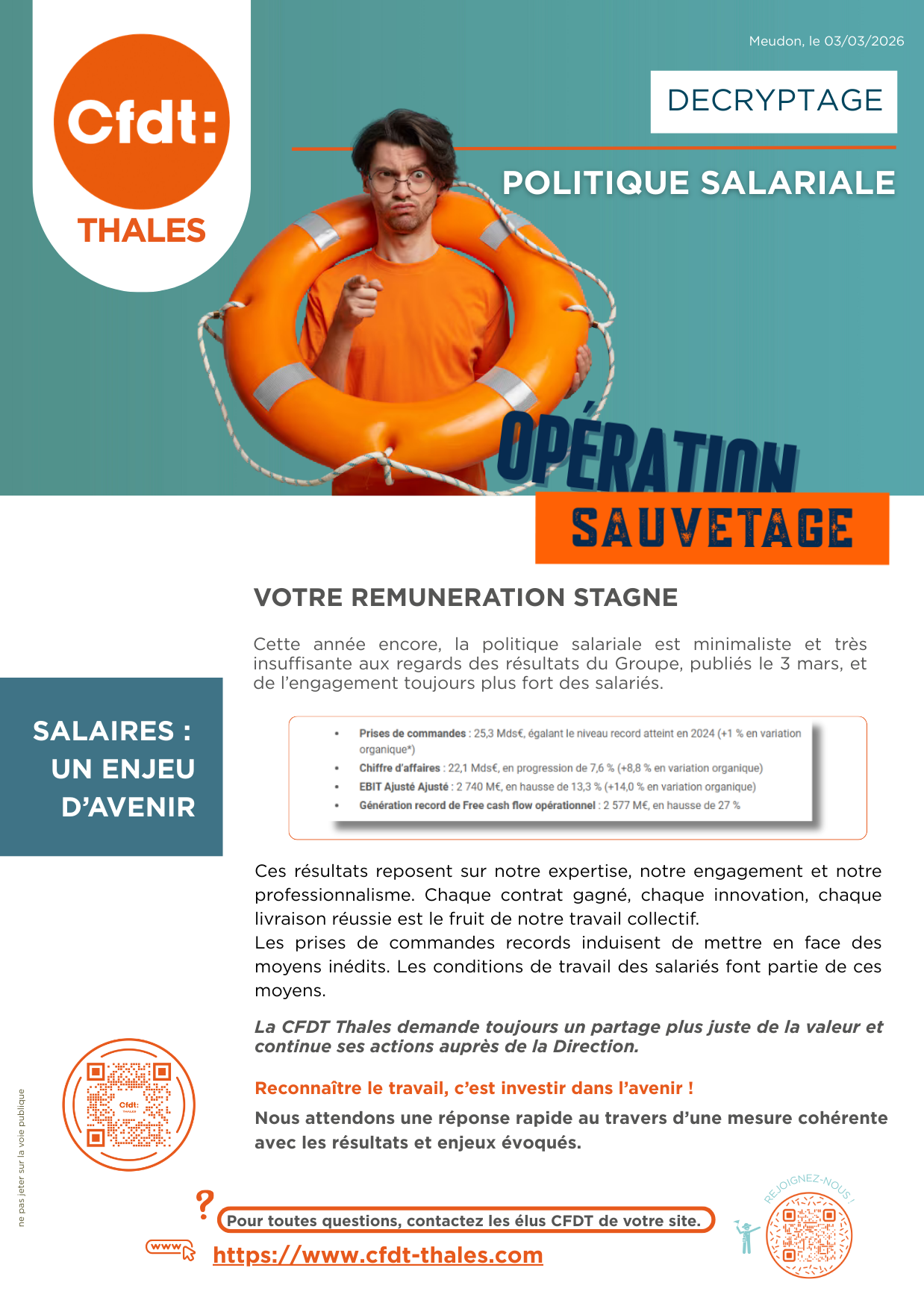La CFDT Thales continue le combat :