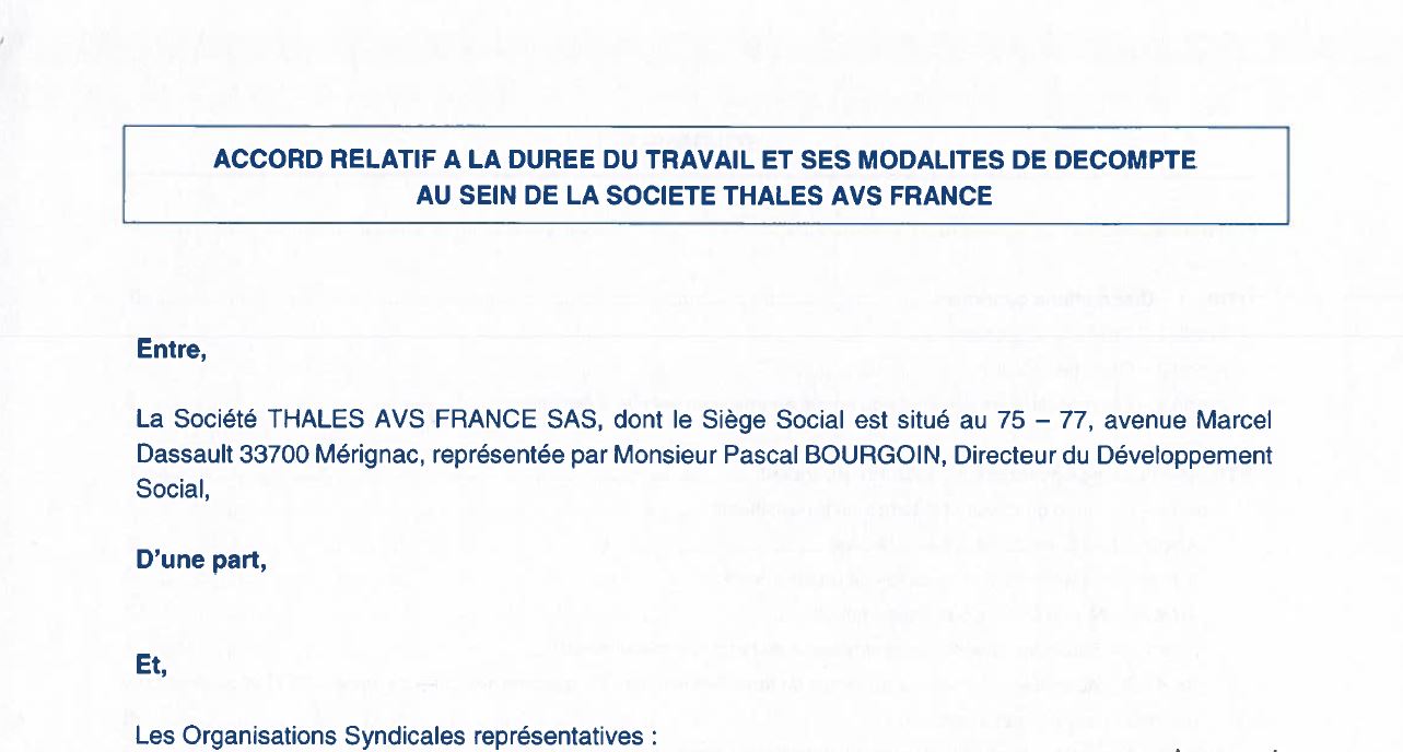 Accord temps de travail du personnel AVS dont le temps de travail est décompté en heures