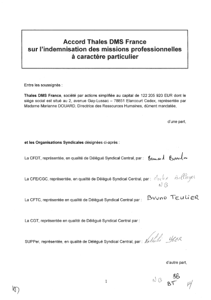 Accord TDMS sur l'indemnisation des missions professionnelles à caractère particulier