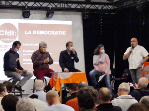 Crée le 12/10/2021Après une grande matinée de débat autour du thème de la démocratie en présence de Frédéric SEVE Secrétaire National de la CFDT et Marc AUBRY, Secrétaire National CFDT-FGMM.