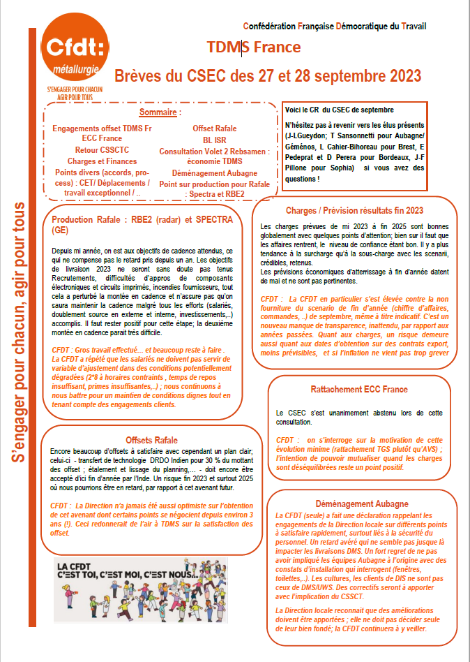 Lors de la consultation sur les projets d'évolution d'organisation du domaine UWS France, sur lequels la CFDT a voté CONTRE, l'Intersyndicale CFDT/C...