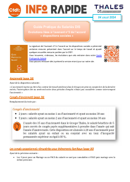 DIS - Info Rapide - Guide Pratique du Salariés Evolutions liées à l’avenant n°2 de l’accord « dispositions sociales »