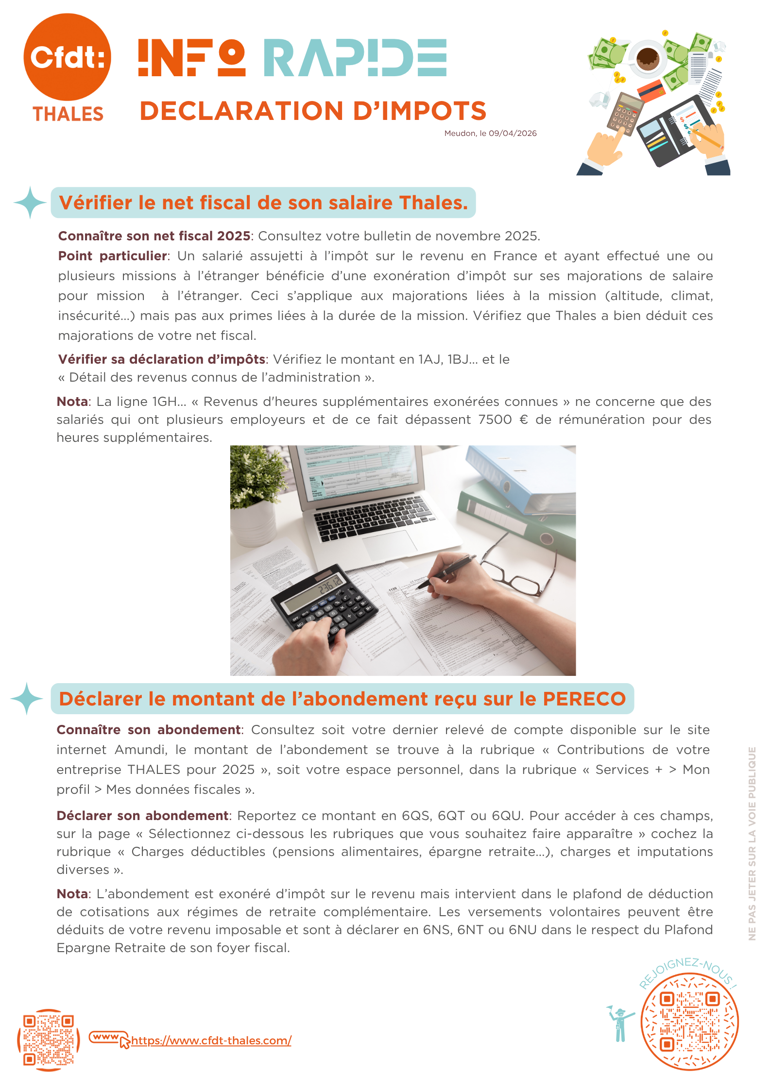 Pour vous aider sur la déclaration d'impôt, la CFDT Thales vous propose une information rapide sur le sujet.